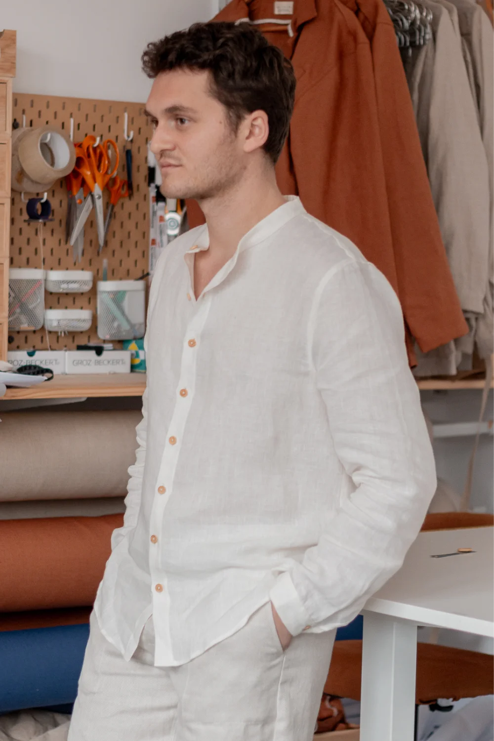Pour développer cette chemise en lin, nous avons écouté vos envies : une chemise en lin Made in France, légère mais solide, qui se tienne bien et qui ne soit pas transparente. Alors, on l'a imaginé et on a passé plusieurs mois à peaufiner ses moindres détails pour vous proposer le modèle idéal. Pour cela, on a fait des dessins, des patrons, plusieurs prototypes, les gradations, des essayages… En avril 2024, nous proposons une seconde version encore plus optimisée de notre chemise avec notamment une coupe qui vous correspond encore plus ! Notre objectif : vous proposer une chemise résistante et qui ne se démode pas !