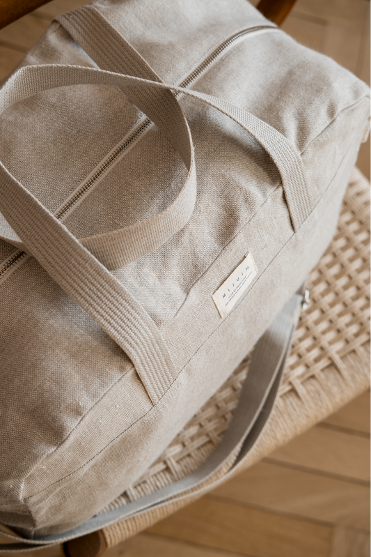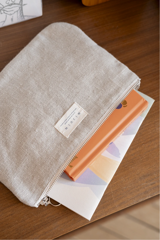 Chez Mijuin, nous confectionnons des accessoires à partir d'un lin qui a très peu voyagé : le lin a été cultivé, teillé, filé et tissé en France, puis assemblé dans notre atelier de confection à Malaunay, en Normandie 🇫🇷