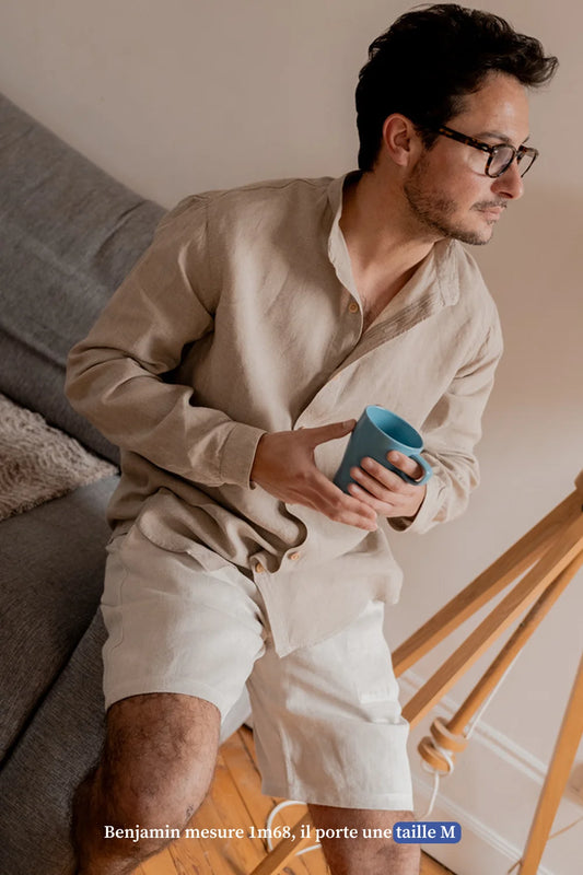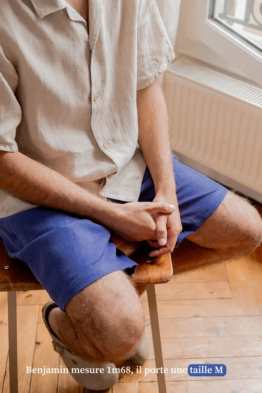 Nos shorts en lin pour homme sont conçus pour être portés tout au long des belles journées estivales, quelle que soit l'occasion, que vous soyez en vacances au bord de la mer, en balade en ville ou simplement en train de vous détendre entre amis.