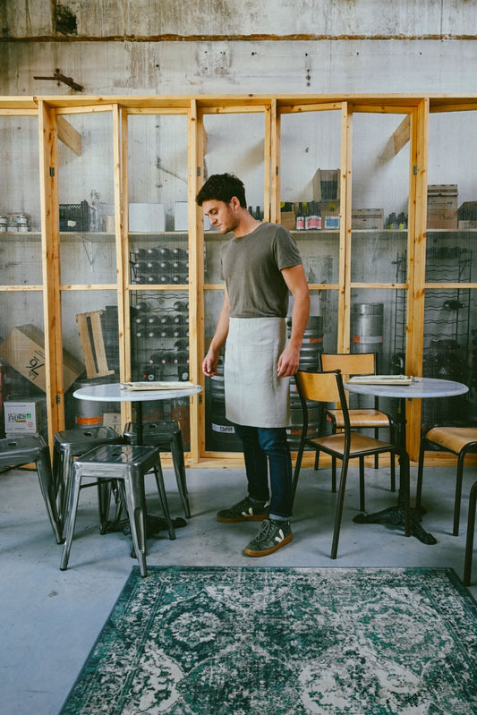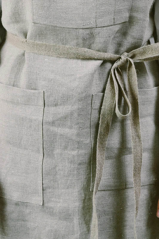 La veste de travail est inspirée de la tenue des ouvrier(e)s : elle est avant tout pratique et a l'ambition d’être portée partout. 100% en lin, elle a un aspect brut et donne une allure décontractée.