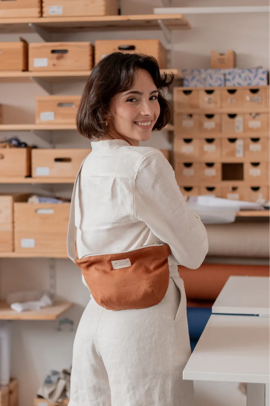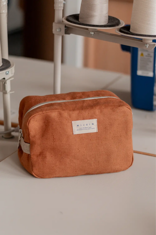 Chez Mijuin, nous confectionnons des accessoires et vêtements pour femme à partir d'un lin qui a très peu voyagé : le lin a été cultivé, teillé, filé et tissé en France, puis assemblé dans notre atelier de confection à Malaunay, en Normandie 🇫🇷