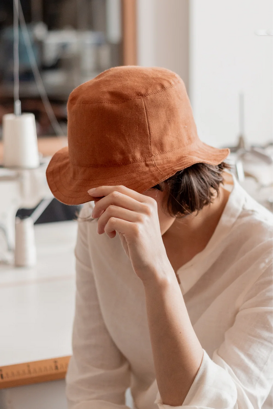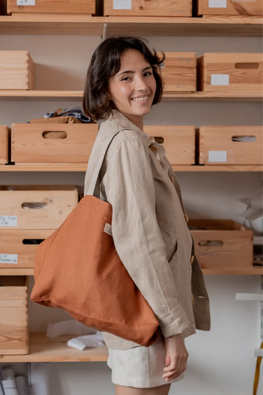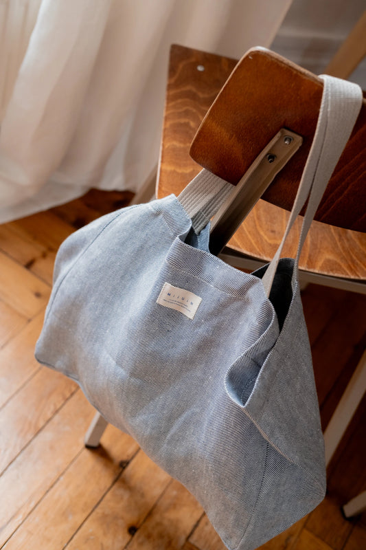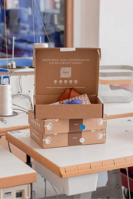 Chez Mijuin, nous confectionnons des accessoires et vêtements pour femme à partir d'un lin qui a très peu voyagé : le lin a été cultivé, teillé, filé et tissé en France, puis assemblé dans notre atelier de confection à Malaunay, en Normandie 🇫🇷